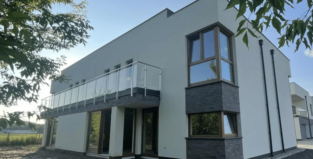 elewacja budynku - tynk silikonowy, styropian 15 cm grafitowy
